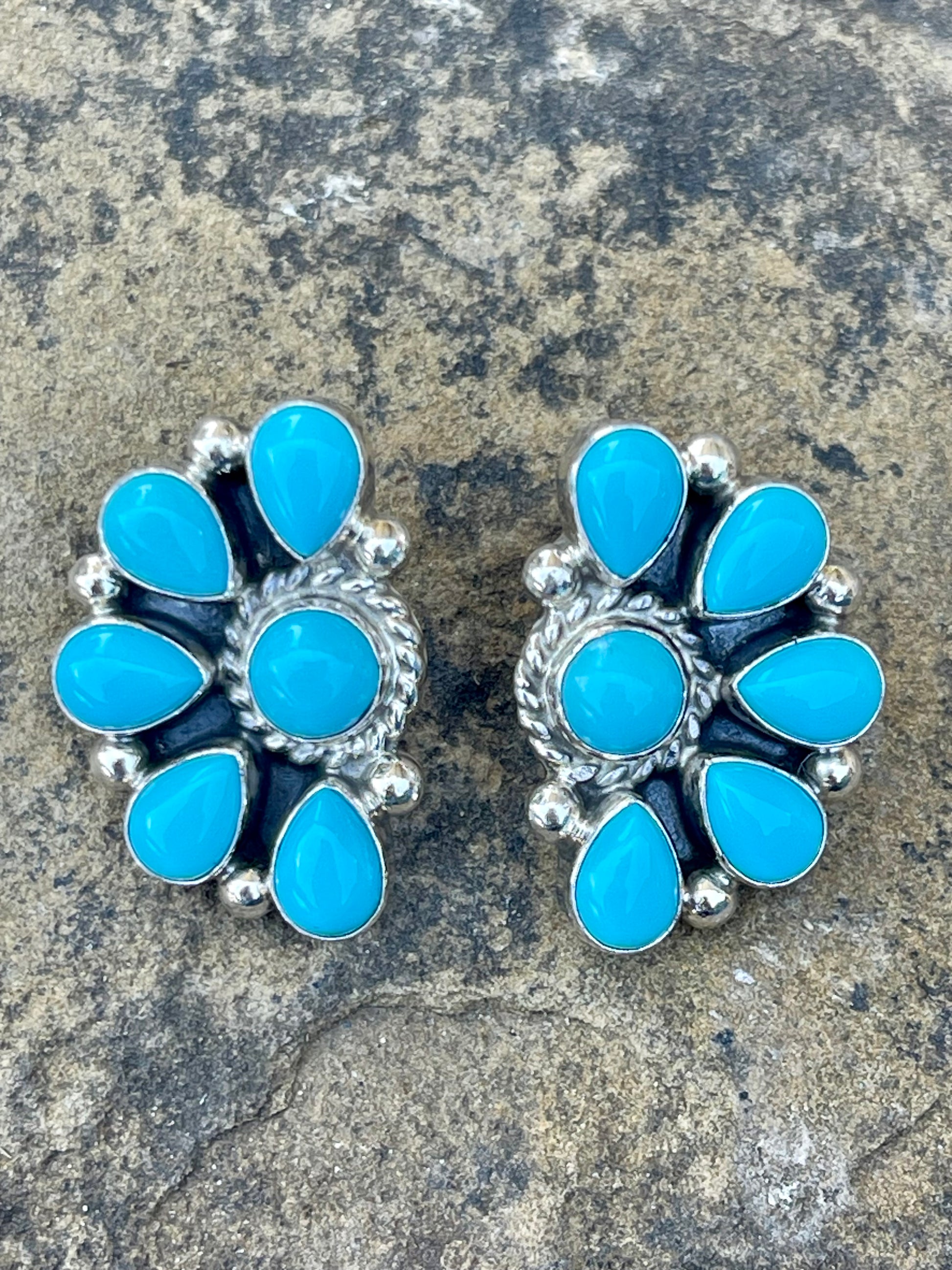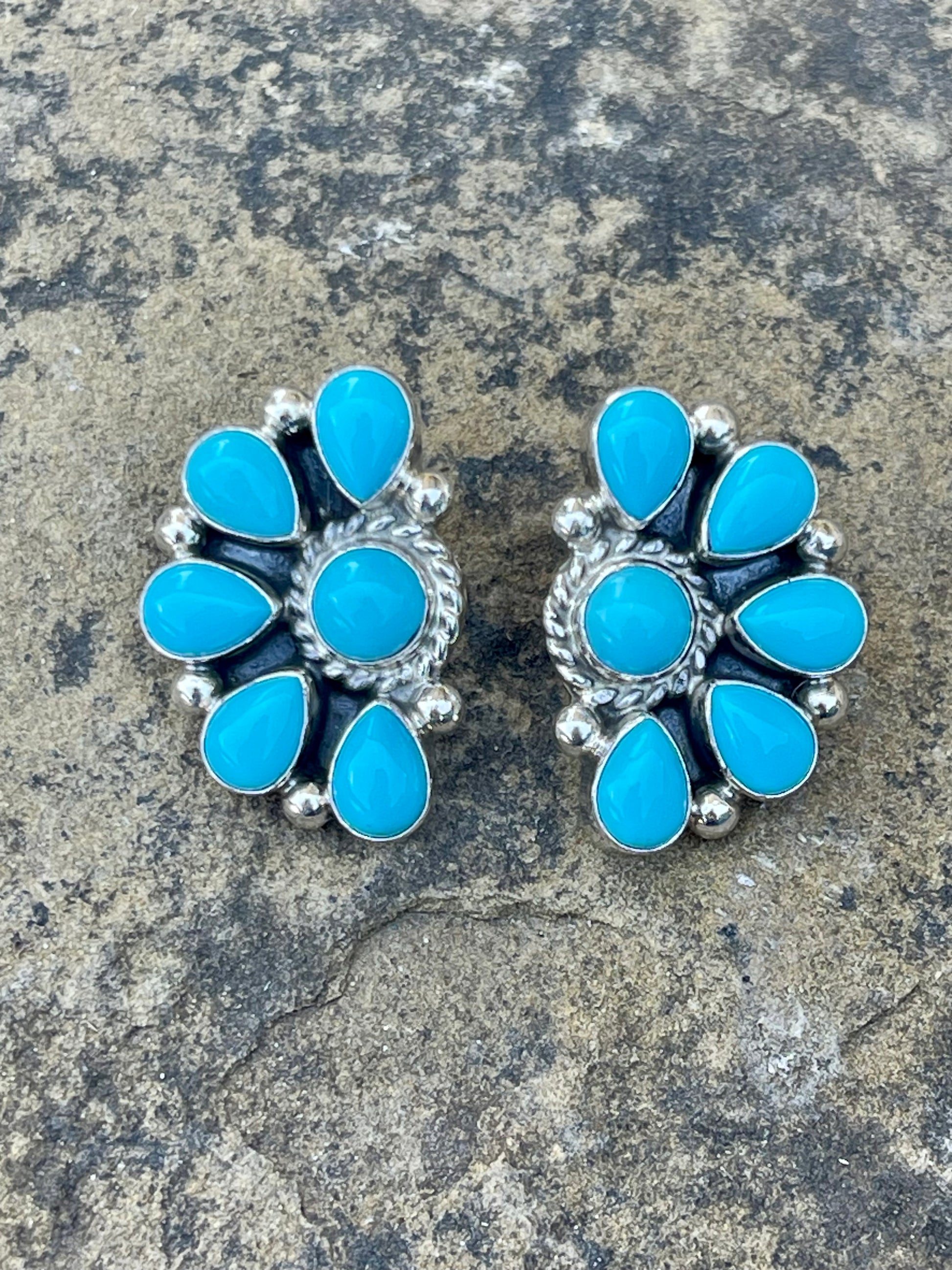 - Turquoise Half Cluster Earrings