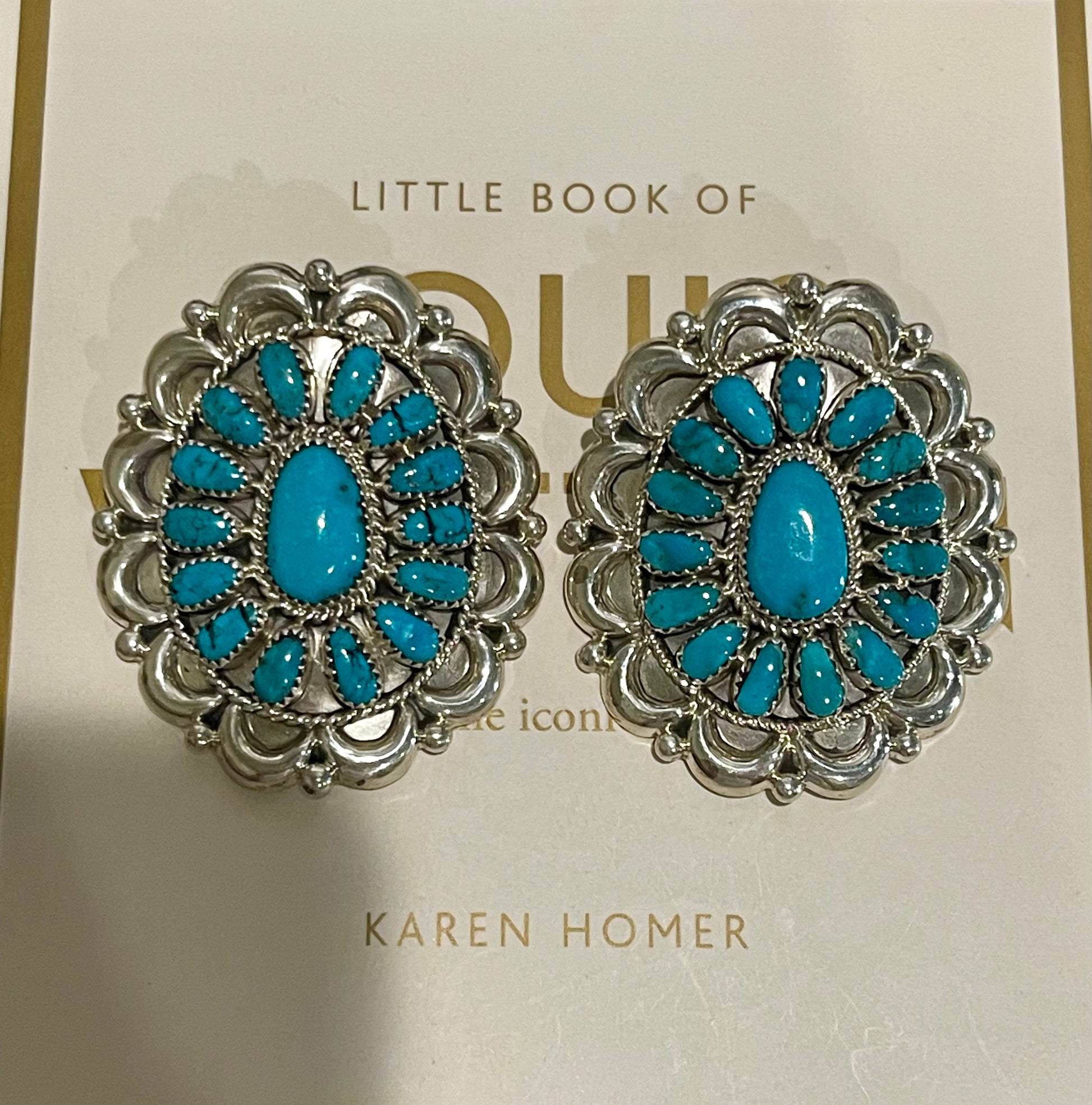 - Gorgeous classy large turquoise cluster studs w/ sliver detail around the stones